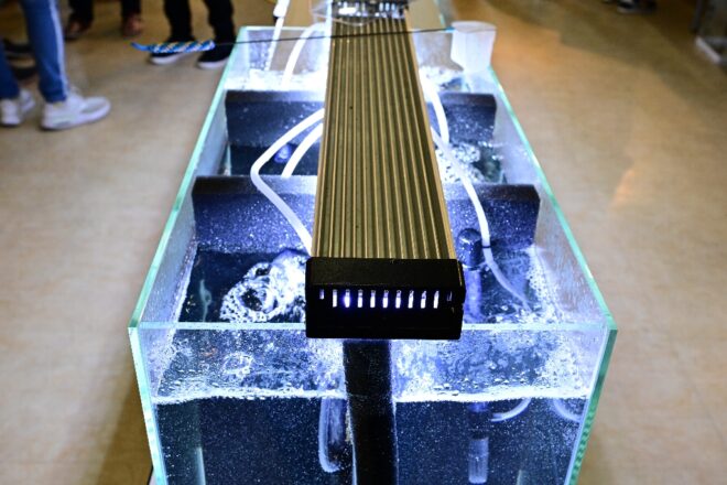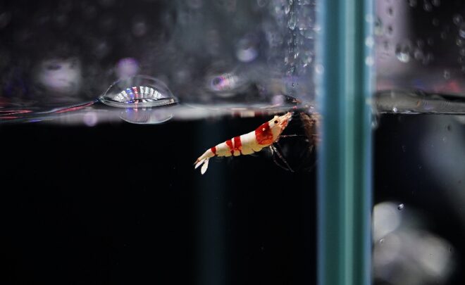 水槽がコンパクトなだけに、それでなくてもミニマムサイズのエビが映えるか心配でしたが、全然OK。高輝度LEDを採用した効果もあって、このイベントならではのシュリンプビューが素敵でした。