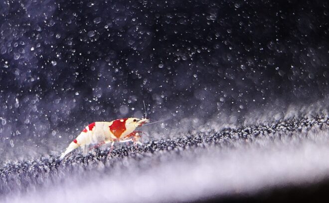 これもレッドビーシュリンプですが、模様がシンプルでカッコいい。この品種だけでも奥が深そうです(店長のえびさん/北海道)。