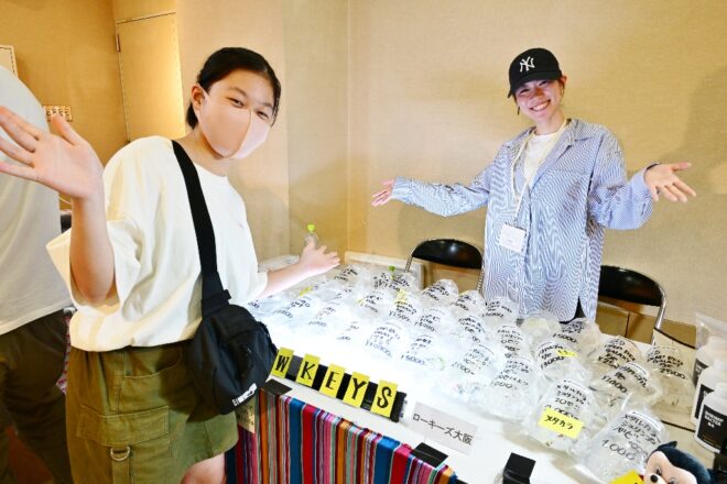 そんなショップの愛娘さん(右)もこの日限定でお手伝い。「忙しい時は駆り出されるんです(笑)」。なんちゅう親孝行。左は大阪市の谷和奏(わかな)さん。なんとまだ中学生。しかも2人とも初対面。「お父さんが自動車工場の事務所でエビ飼ってます。お父さん、こんなところへきたらイキイキしてるんです。普段と全然ちゃいます(笑)」と、みんな初対面なのにフレンドリーすぎました。ぜひ取材に行ってみたいなあ。