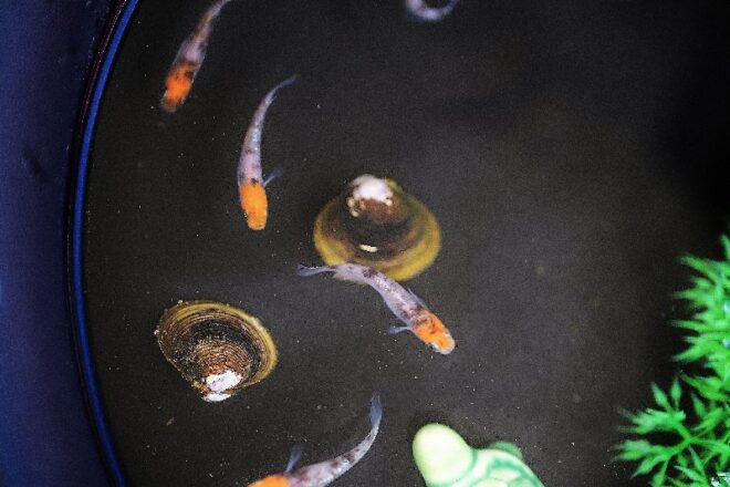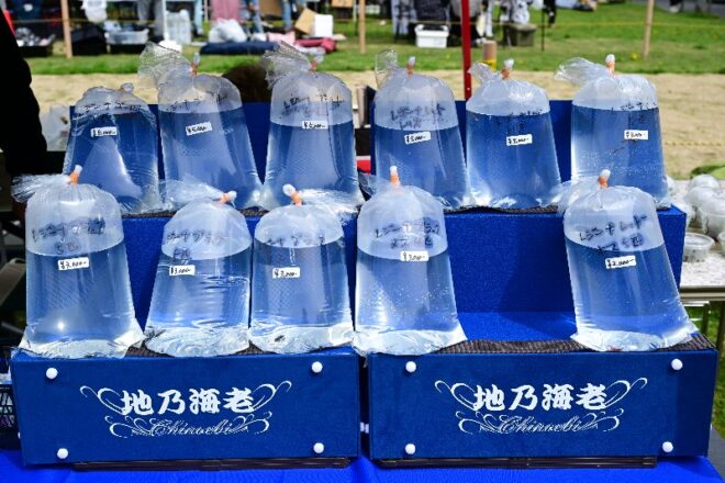 メイン出品は配色がきれいな坂出三色。このほか、おそうじ用の淡水しじみやドブ貝などもタモ同様出品されていました。