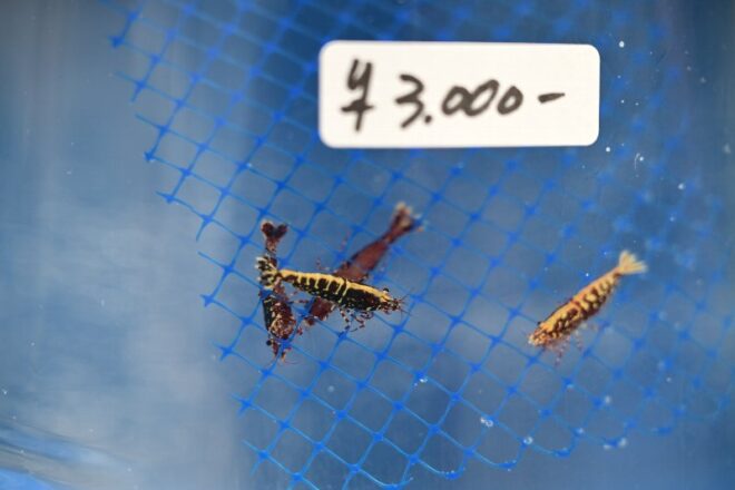 ほかにもエビを出品しておられたブリーダーさんがおられました。地乃海老さん。このかたもはるばる福岡から出品。福岡のエビ事情は?「ショップが数軒あるんですが、やっぱりメダカのほうが強いですね」。