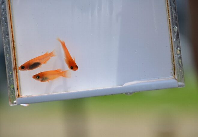 金魚すくいの経験もないのに、20匹以上ゲットした女子も。ひょっとしてメダカはすくいやすい魚なんでしょうか。それともメダカは人にやさしい?