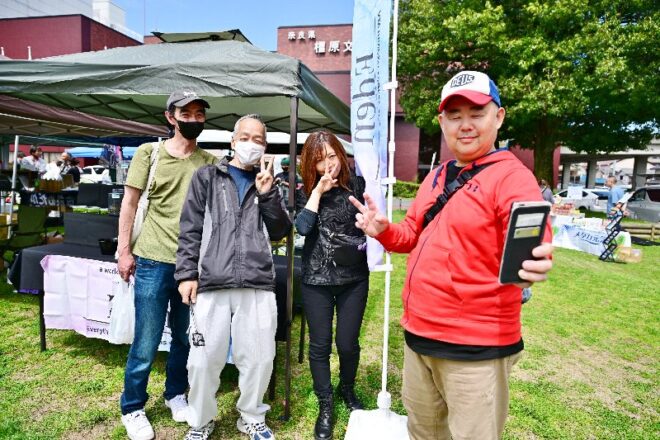 当日は時々晴れ間がのぞく汗ばむ陽気に。「持ってるね~、やっぱり」。会場となった橿原文化会館南側広場を見下ろしながら、キワメテスタッフはそらみたことかと自信たっぷりにつぶやいたのでありました。