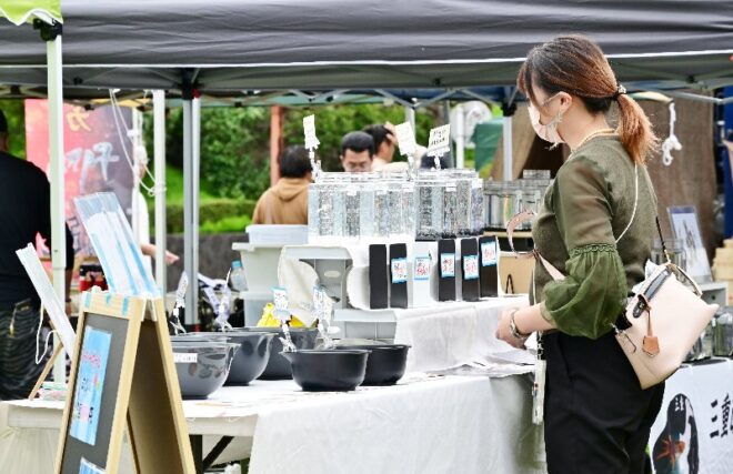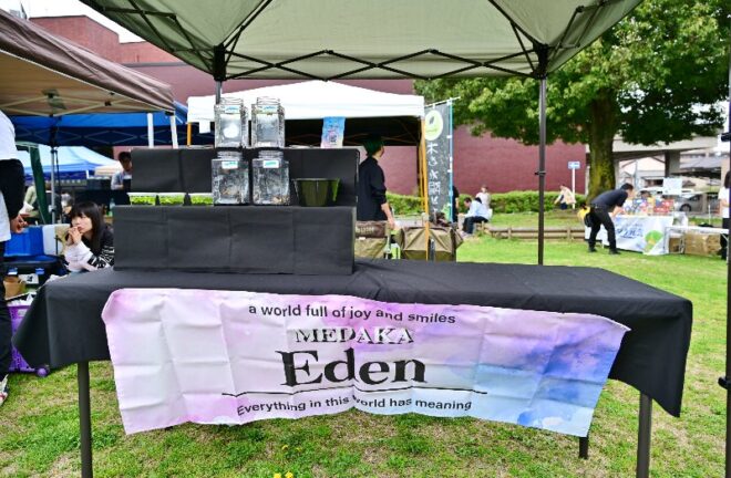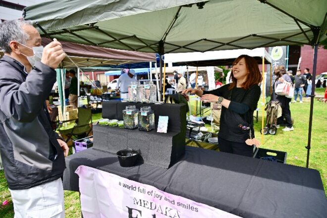 会場では、出店者ブース以外にメダカすくいコーナーも開設。次の日から新学期が始まることもあってか、全体的に子どもたちは少ないような気がしました。