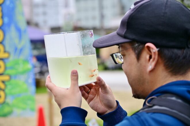 こんなメダカイベント、ちょっと見たことない。集まったメダカ愛好家は70以上。しかも全国規模。メダカだけじゃなくエビもいる。何より、ユニークなニンゲンたちがヤバすぎて。この日は全国的に桜も満開。まさに絶好のメダカ日和となりました。