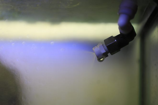タイマーによって、雨だって自動的に。湿度70%以上に保っておかないといけないそうです。いや~、タイマーとはいえ排出される水も管理しないといけないし、これだけでも大変なのにディスカスが100匹以上いるなんて、凡人には信じられません(笑)