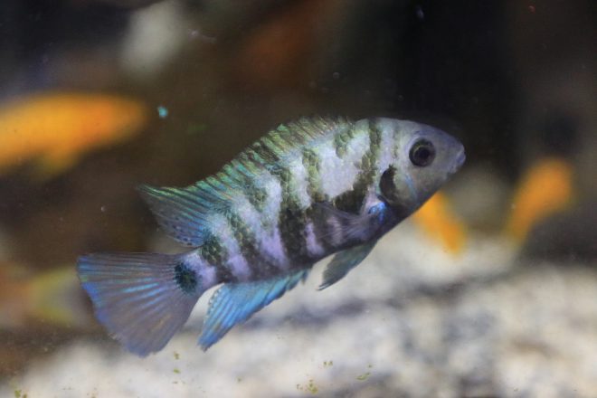 ディスカス以外にも水槽が数本。ネオプロローガスレレウピィ、コンビクトシクリッド、セベラム、トロフィウスモーリーなど、南アフリカのタンガニイカ湖やアメリカに生息する魚を集めた水槽も。これじゃ水槽がいくつあっても足りない気がします。