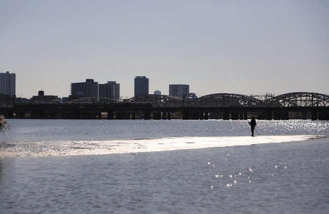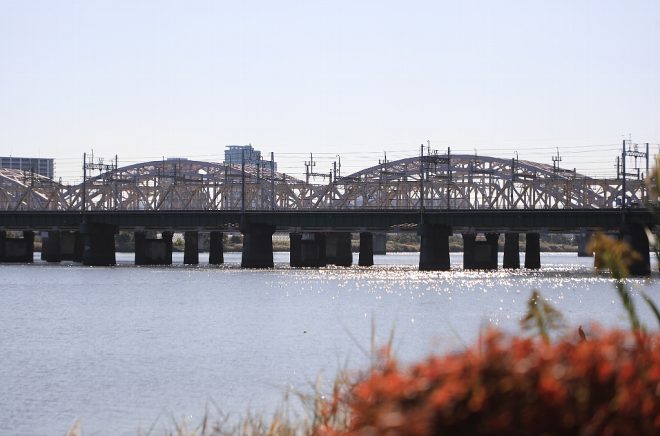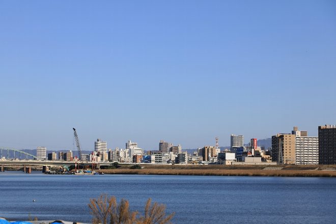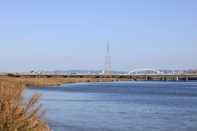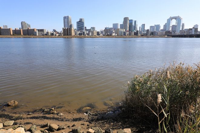 大阪府北部を東西に流れる淀川。今山下さんといる淀川大橋よりさらに上流にある淀川大堰付近からこちらが汽水域。この日は、取材というよりもネイチャーガイドをお願いしました。「こんな私でよければ」。はい、いいんです(笑)