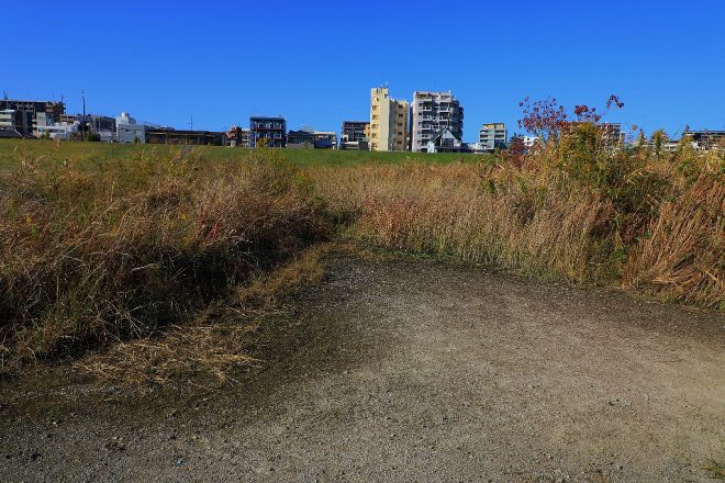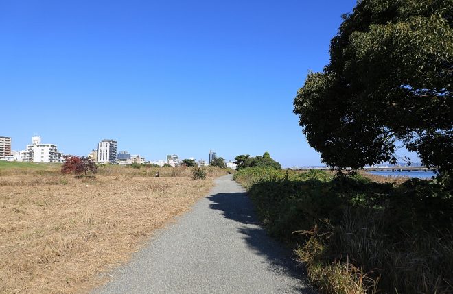 早速河川敷を歩いてみることに。いや、河川敷よりさらに下でした。舗装されていない遊歩道を淡々と。遊歩道に沿って緑がたくさん生い茂り、その向こう側には淀川が。大阪市内とは思えない不思議な空間。山でも海でもない、河川特有の風景が広がっていました。プチ感動(笑)