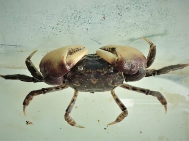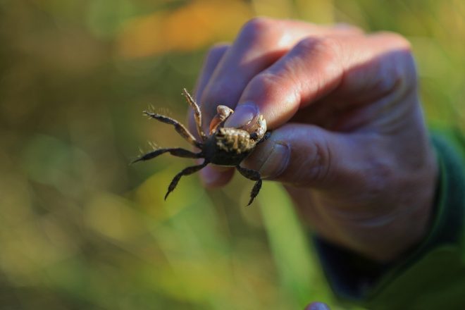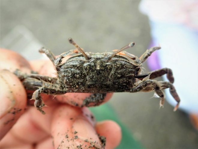 ここにもカニさんが。オサガニは、近畿エリアではすっかり見れなくなったレアものだそうです。カニ好きの山下さん、どこへ行ってもカニのほうから寄ってきてくれるみたいです(笑)