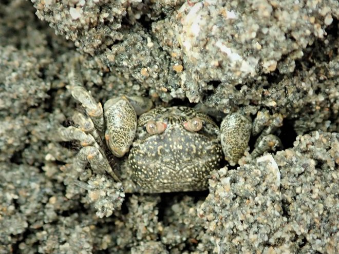 同じ汽水域にいるカニでも、コメツキガニの生態はちょっとユニーク。オスがお目当てのメスを見つけると、強引に自分の巣穴に引き込んでしまう性質があるのだか。へー、面白い!カニの世界でも、多目的なんちゃらって流行ってるんでしょうかね(笑)