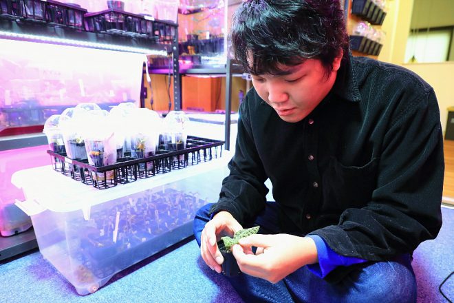 花そのものではなく、葉っぱの模様や色を楽しむというちょっとマニアックな世界観。エンドラーズが好きだったアクアから始まり、水草を使ったレイアウト水槽へ。それだけでは飽き足らずベゴニアなどの熱帯植物にハマり、たどりついた先が洋ランの一種であるジュエルオーキッドでした。去年サラリーマン生活から、プランツファクトリーのオーナーに。弱冠29歳。世間ではあまり知られていない分野だけに、ぜひ会ってみたくなりました。