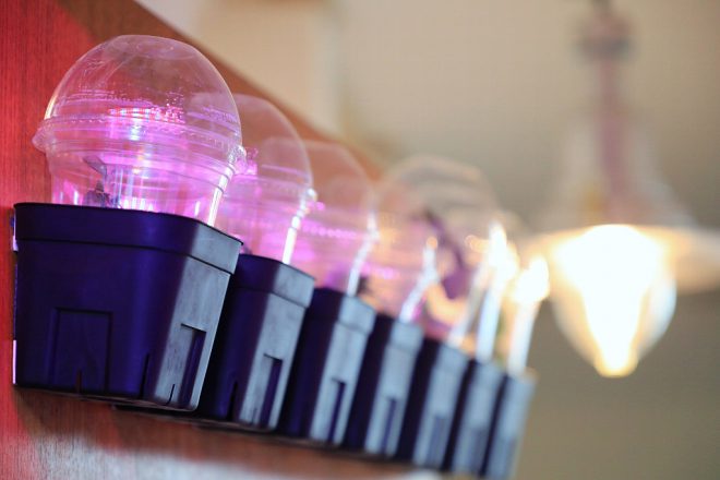 スキップフロアタイプのおしゃれな住居の2階部分がファクトリー。元は愛犬の住まいだったスペースが、今やプランツの培養工場に変身しました。