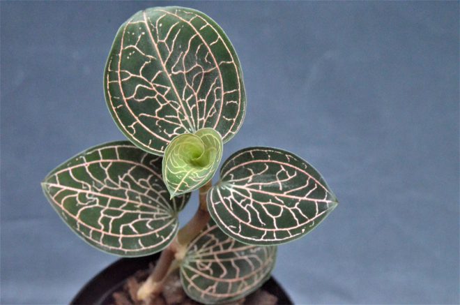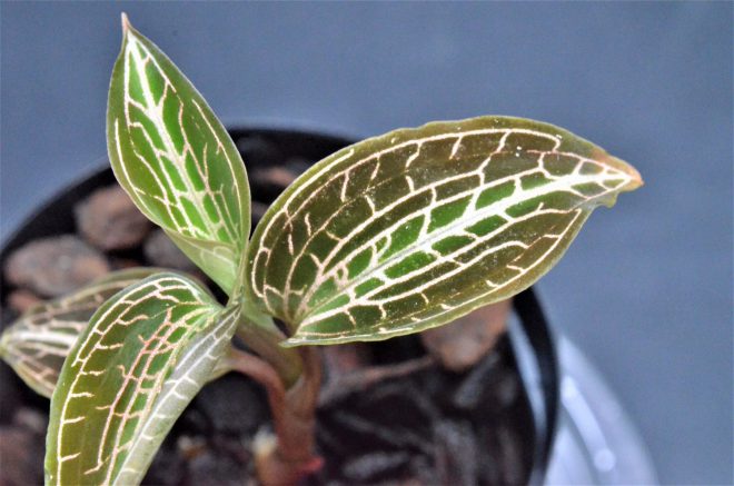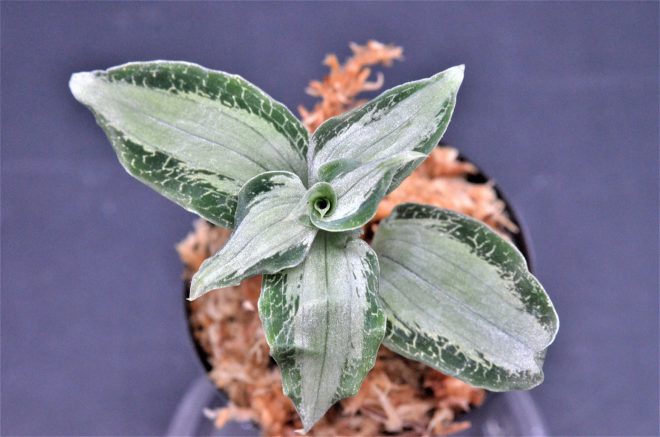 日本の八丈繻子ランに似ていますが、全くの別種。こちらは南米産のジュエルで、子株のうちはそれほどでもないのですが、大きく育つにつれ非常にキラキラが濃くなります。美しくて育てるのも比較的簡なので、日本でもこれから人気が出てくるのではないかと期待しています。