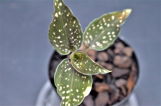 「どうしても欲しかったので、ついつい買っちゃいました(笑)」というスマトラ産の班入りのアネクトキルス。葉は外側にカールして育ち、写真ではわかりづらいと思いますが、とても美しい風貌。太田垣さんと同じような立場の人から買ったもので、なんとン万円もしたそうです。