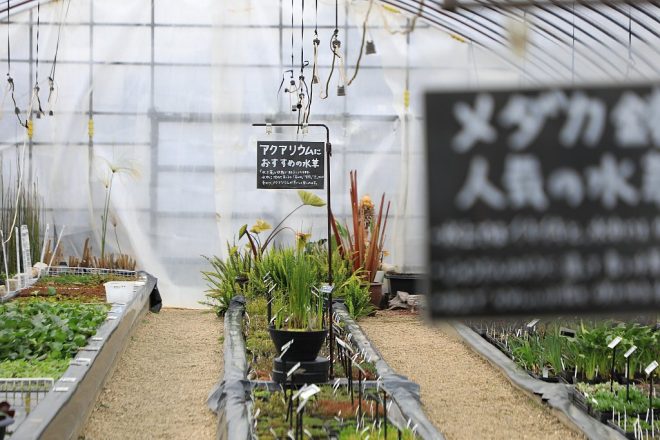 もちろん、ざっと40種類はいるメダカコーナーだったり。これだけラインナップが揃っていれば、まる一日品定めをする人がいるのもうなづけます。さすが園芸のプロ集団。以前取材で訪ねてから2年が経ちますが、確実に進化しています。