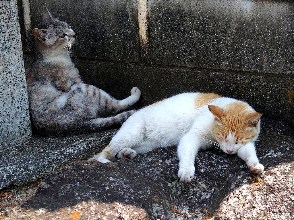 そのせいでしょうか、柔らかな春の日差しに包まれて猫たちものんびりしています。