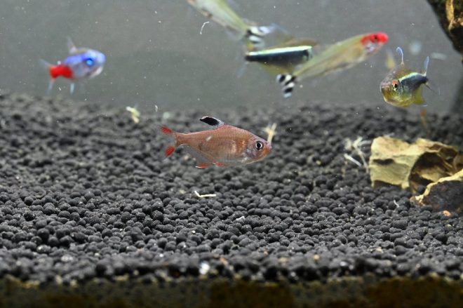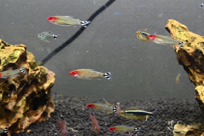 ネオンテトラ、カージナルテトラ、ブラックテトラ、コンゴテトラ、頭部の赤いのが特徴のラミーノーズテトラなど、ほぼほぼテトラ系。