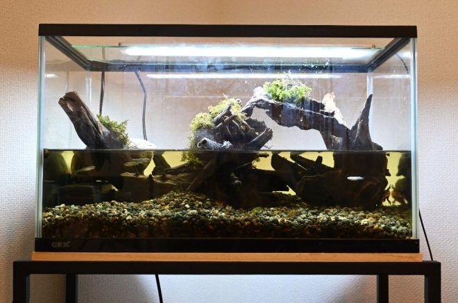 清流コーナーの下に置かれたKOTOBUKIの60㎝水槽。