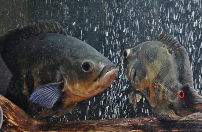 今までなかった大型水槽。大阪府堺市のアクアショップで中古購入したそうですが、オスカーやエンドリケリーなどがゆうゆうと泳ぐ姿はさすがにダイナミック。