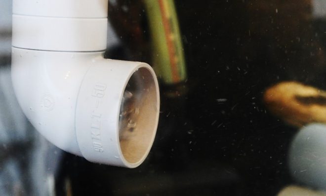 水槽の一番奥に吸い込み口があり、上部を経てろ過された水が再びこのポンプから水槽へ。こんな仕組みをわざわざつくるのも、水族館を意識しているからこそ。「買ってきてすぐに取りかかりました。終わったのは真夜中でしたが(笑)」。もう、次の休みの日まで待てばいいのに(笑)。