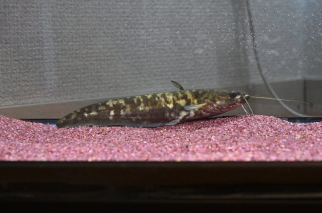 中にはナマズが1匹。どことなく新しい気がするのは自分だけ?「いやあ、この水槽がきっかけでえらいことになりそうなんです(笑)」。え?え?どういうこと?いよいよ緊急出動!?
