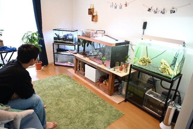 ここの目玉は何といっても、オキナワシリケンイモリ。「ショップで一目惚れしました。よくあるんです、思いつきで買ってしまうことが(笑)」。その姿勢、火事だと聞いたら躊躇することなく出動するのと同じ(笑)?