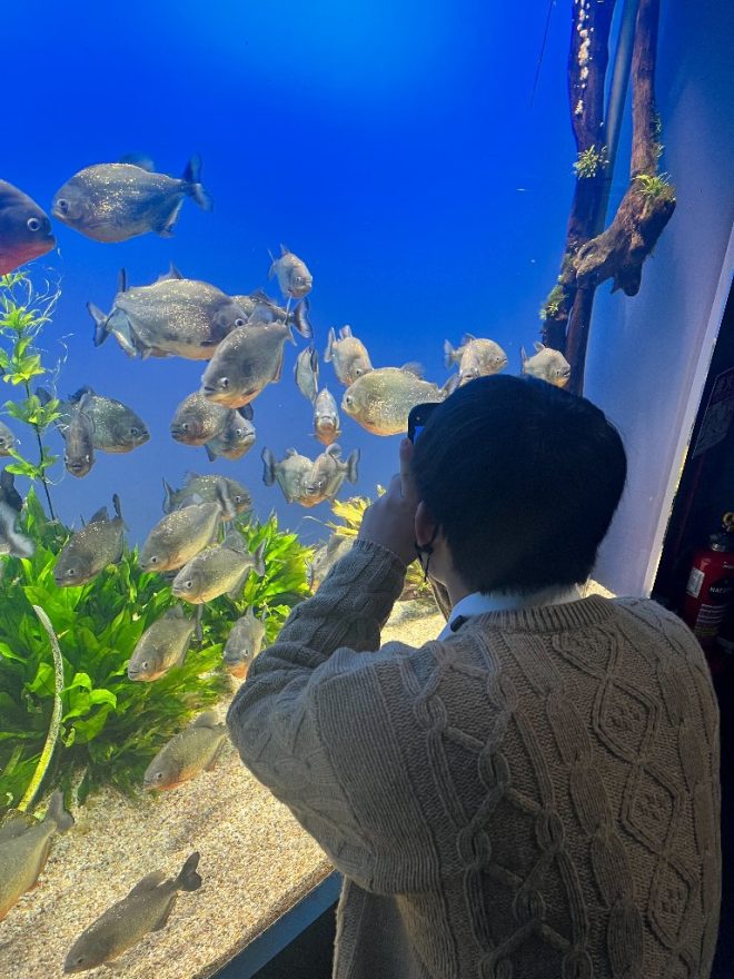 感想は?「ピラニアの水槽が1番印象に残っています」。