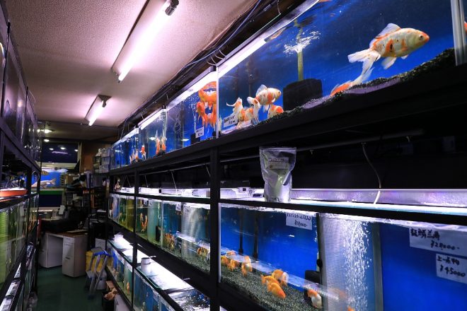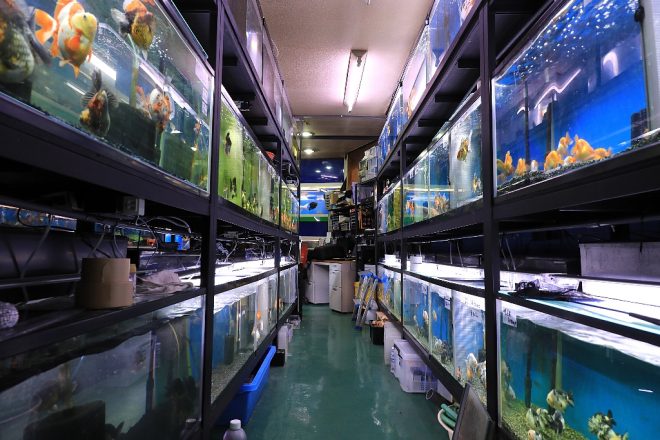 と、その前に(笑)。アジアアロワナだけでなく、最近は高級金魚にも強みを発揮している同店。ついこの間まで、金魚に特化した別館を別店舗で構えていたほどでした。