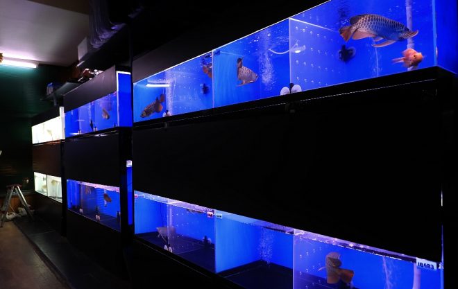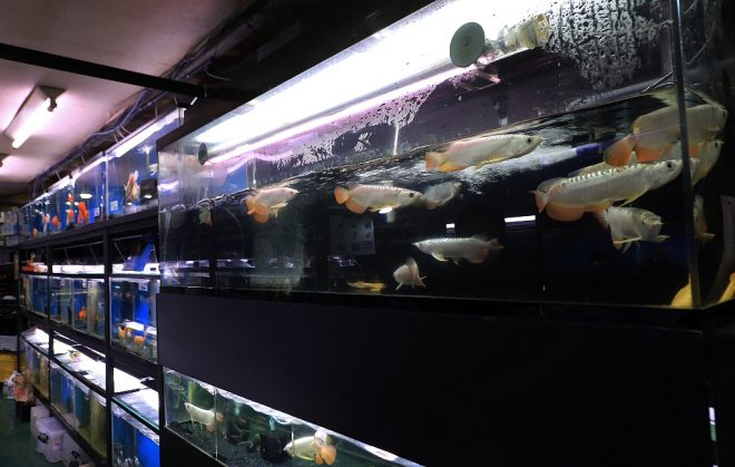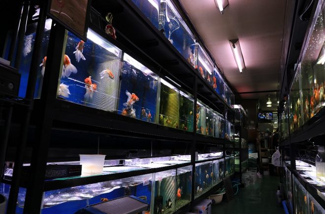 人に自慢できる高級金魚が欲しい。SNSを通じて自分のアジアアロワナを見てもらいたい。中崎町をぷらっと歩いて店に立ち寄り個体と目が合ったら、ぜひお買い上げを(笑)