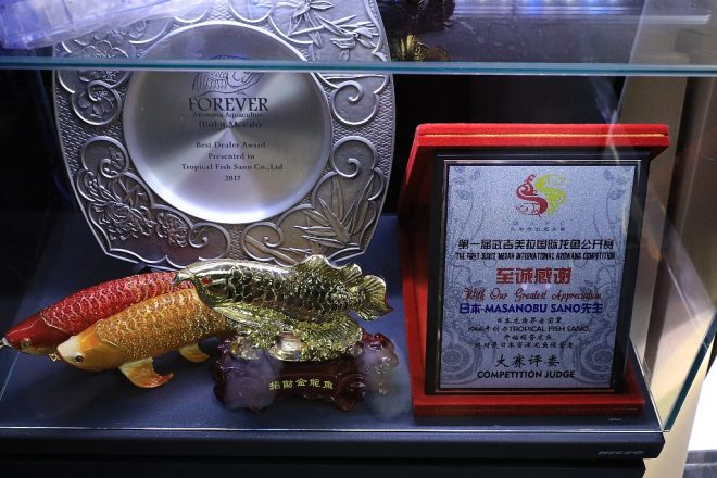 今ではワシントン条約によって輸出が禁止されている野生のアジアアロワナ。さらに輸出の許されている繁殖個体であっても、許可をとったファームしか輸出することはできません。そして輸出可能なファームの中でも、アジアアロワナの本場・ブキメラで開催されたコンテストでフォーエバー社の個体が受賞するなどして、ブランド力を不動のものにしています。