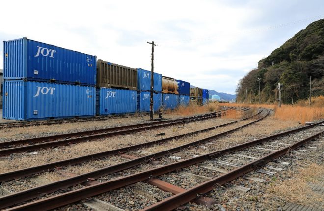 敦賀港がまだ港として機能していたころには、もっとたくさんのコンテナを積んだ貨物列車が頻繁に行き交っていたのでしょう。線路脇に放置されたコンテナが少し寂しげでした。