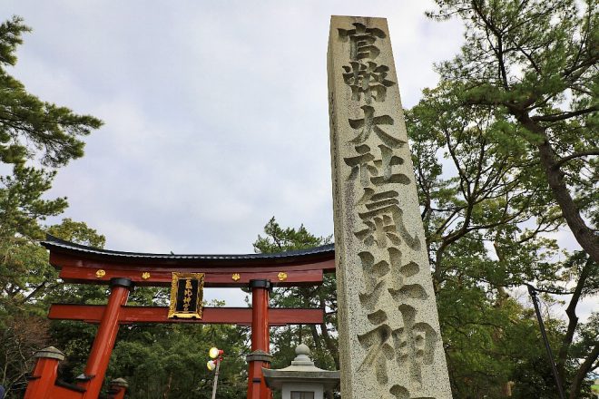 駅から歩いて約15分。気比神宮は、春日大社(奈良県)・厳島神社(広島県)と並んで、日本三大木造大鳥居として有名です。30年に一度塗り替えられるそうで、今回は去年12月31日に終わったばかり。そんな真新しい大鳥居と早速遭遇でき、新年早々ラッキーでした。