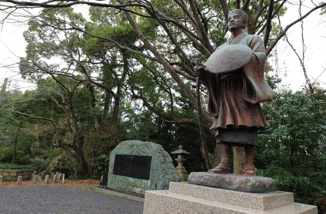 さらに奥に進むと松尾芭蕉の像と句碑がありました。「おくのほそ道」の執筆中に気比神宮に立ち寄った芭蕉は、素敵な月のある風景を眺めながら一句詠んだそうです。