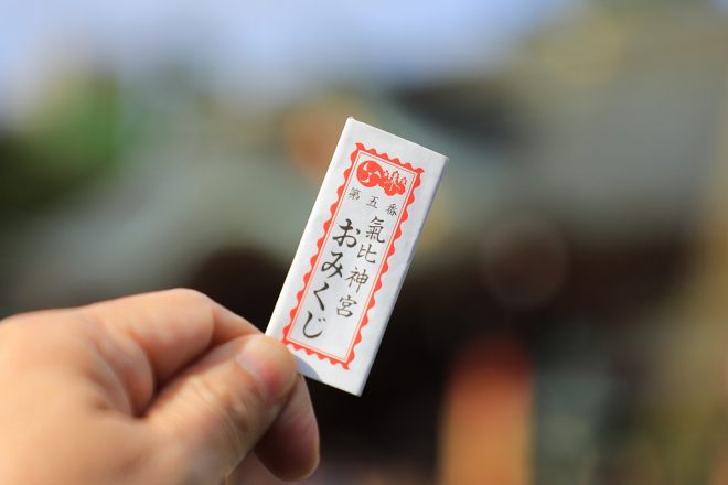 おみくじを引いてみました。おみくじは神様から頂いた大切なもの。身につけて持ち歩くのが本来のかたちだそうです。特にいい運勢のおみくじは持っていたくなるもの。ということで今回は持ち帰ることに。その結果は、ご想像にお任せします(笑)