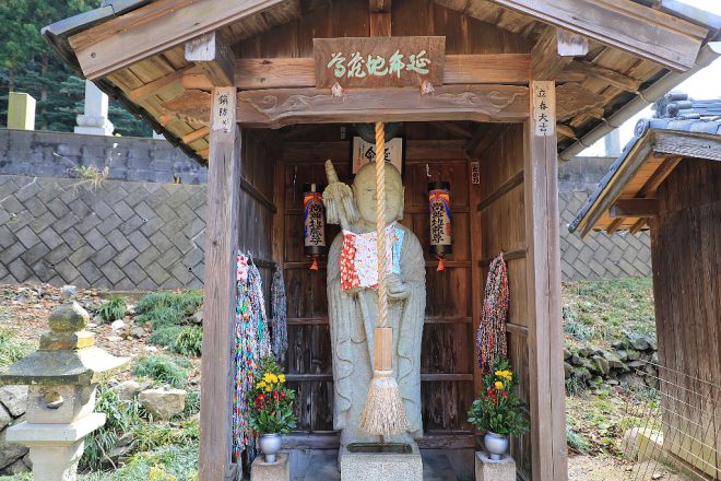 タクシー会社に無線で問い合わせてもらっても、「幼少の時に記憶があるけど、もしかしたらもう枯れてるかも」。地元ではあまり知られていないのか、はたまたタクシーが知らないだけのことなのか。境内に聞く人もおらず、今きた道を戻るしかないと絶望感満載でした。延命地蔵はちゃんとあるのに(笑)