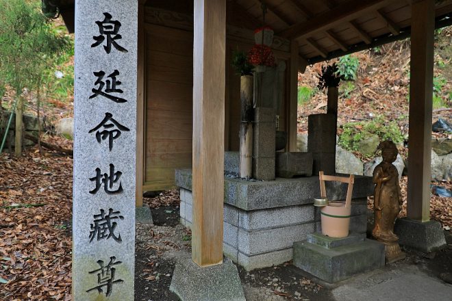 延命地蔵があり、さらに一段下がったところにあったのが、“泉(しみず)のおしょうず”でした。