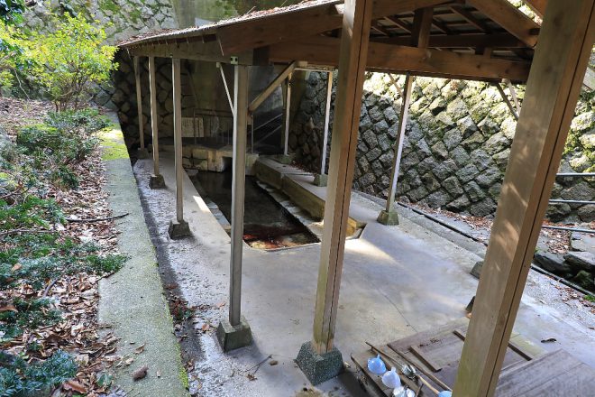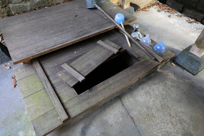 枯葉などが入らないように、木のふたがされていて汲みとるための手桶やジョウゴも置かれています。お正月空けだったせいか人はいませんでしたが、地元の人たちの生活を支える水場として大切に守られていることがよくわかります。