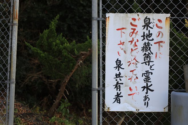 もしかしたら、おみくじで運を使い果たしてしまったのかなと諦めかけていたら“この下に泉地蔵尊と霊水あり”と擦れた文字の看板が(笑)。