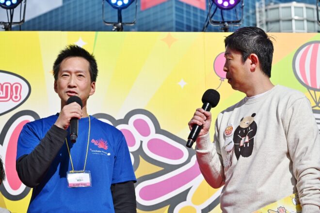同じく2日目には、メイン会場のステージに引っ張り出された河村さんが、スイーツの達人としておなじみの岡安譲アナのインタビューに答える場面も。「めっちゃ緊張しましたわ(笑)」って何を今さら。