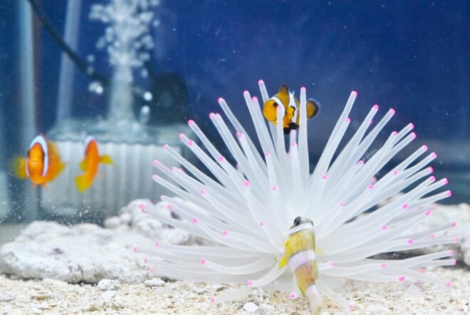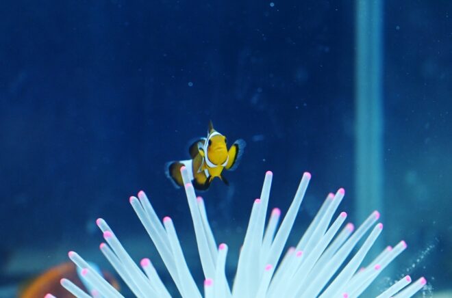 「うみばこファーム」といえばやっぱりカクレクマノミ。若いころダイビングが趣味の河村さんが沖縄の海に魅了され、移動水族館につながったのも、この魚がきっかけでした。