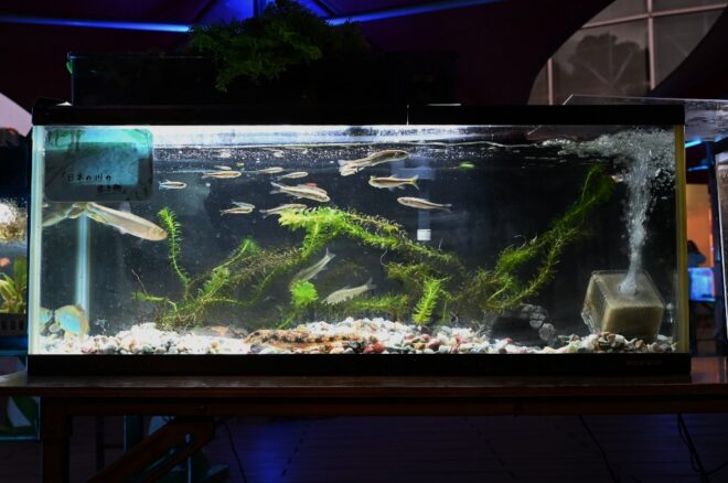ほかにも、あわら市・竹田川で捕獲したカワムツ、カマツカ、チチブ、オオカナダモなどの川魚を集約した水槽があったり。