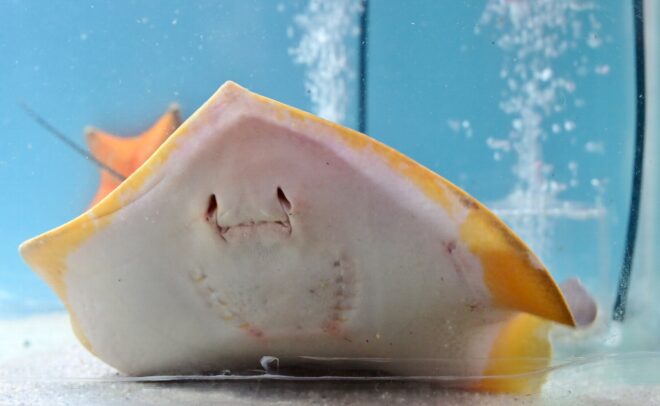 昼間はグースカ寝ていたアカエイがなぜか覚醒。来場者に愛嬌を振りまくシーンも。