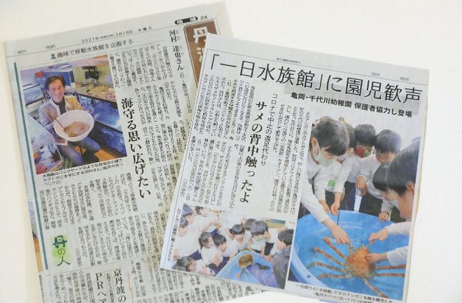 今年2月に行われたイベントに、地元の新聞社も注目。「コロナ禍真っ只中でも、工夫して思い出づくりができたという感じで取材していただきました。反響も大きかったですよ」。キワメテ!水族館も頑張ります(笑)。