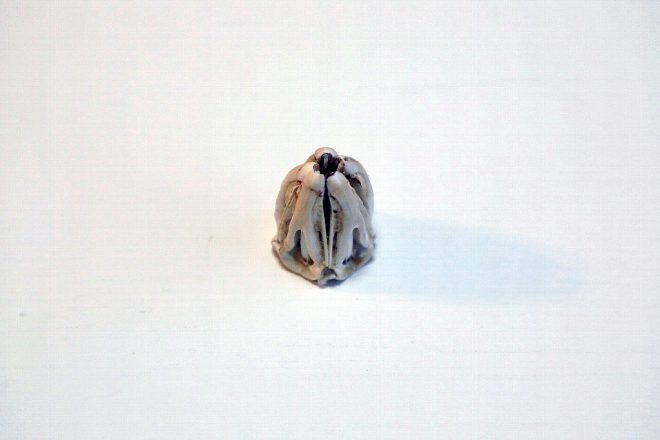 深海のサメ・ナヌカザメの卵。ちょっと異色。乾燥してしまうとプラスチックのように硬化してしまいまいますが、水の中ではしっかり中身を守るかたちになっています。