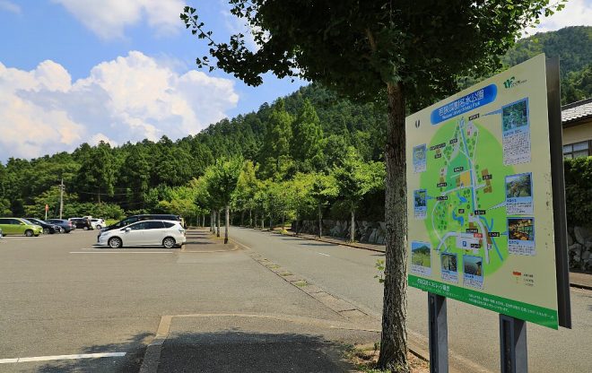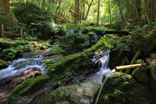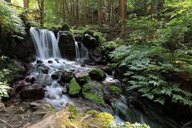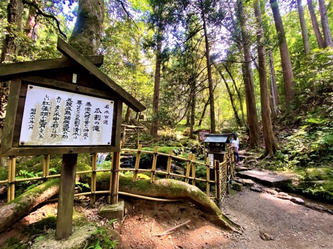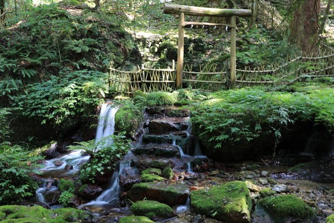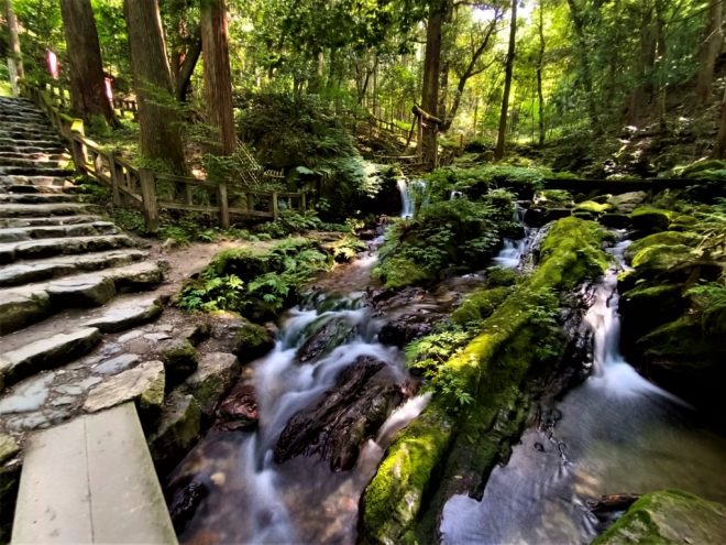 この先ずっと山道が続くのかと思いきや、意外とあっさり現着。うっそうとした木陰が広がり、水の流れ落ちるクールなウォーターサウンドがあちこちから聞こえてきます。