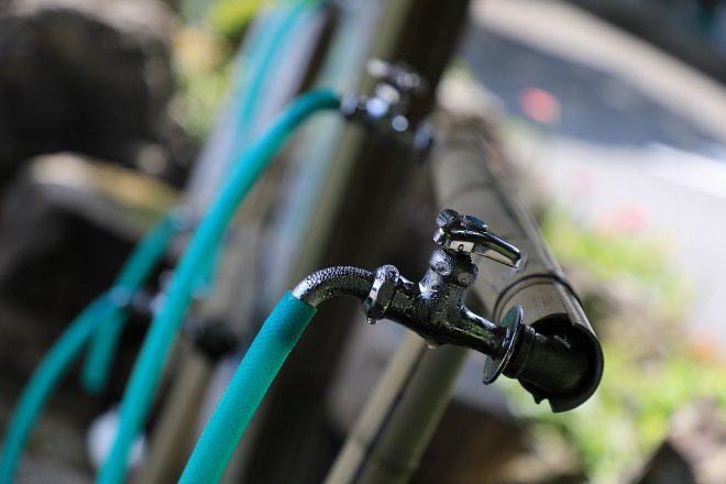 ここが取水場。20ℓや40ℓのポリタンクを手に、計6つの蛇口から出る水を求めて人々が集まっています。すぐ近くにあるお店で購入できる300円のシールを個々のポリタンクに貼っておけば、あとはフリーパス。若狭人、何というやさしさなんでしょ(笑)