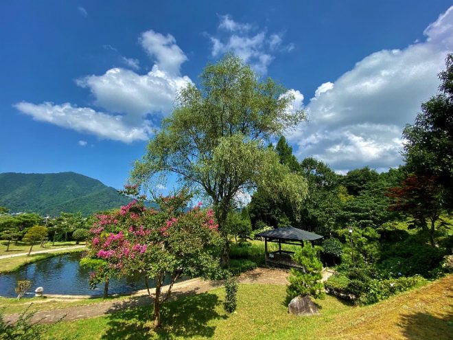日本庭園風のシチュエーション。こんな水のある風景でのんびりするのも悪くありませんね。。
