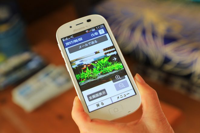 水槽の模様替えをした時は、スマホで写真を撮ってお友達にもみせる楽しみも生まれたそうです。「みなさん、きっても喜んでくれますよ」(奥様)