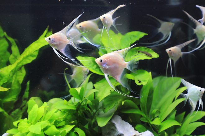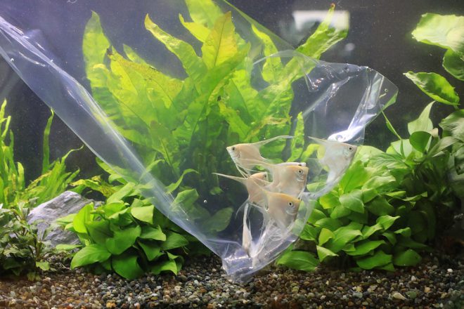 そして今回の主役はこれ。「以前入れてもらっていたエンゼルフィッシュがとても気に入っていたので、また入れてもらうことにしました」とご主人。約2年ぶりのエンゼルフィッシュとの再会。こうして定期的に好きな魚を飼育できるのも、メンテナンス契約の魅力のひとつといえるでしょう。